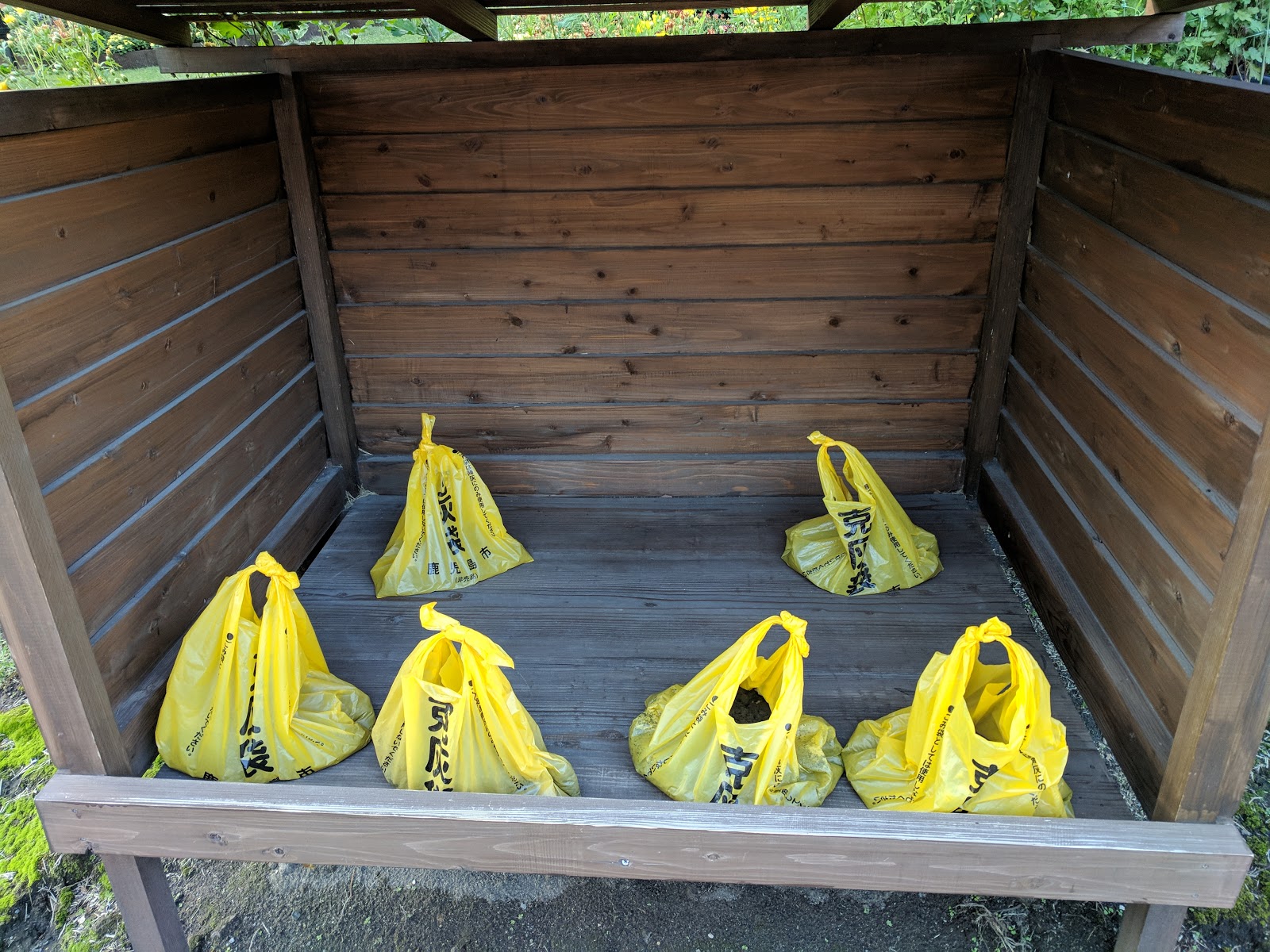 As I left the garden, I noticed yellow bags of volcanic ash, reminding me that Sakurajima was very much part of Kagoshima daily life.