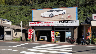 Across from the port, cars, scooters, and bicycles were available for rent. The signage provided all the information I needed.